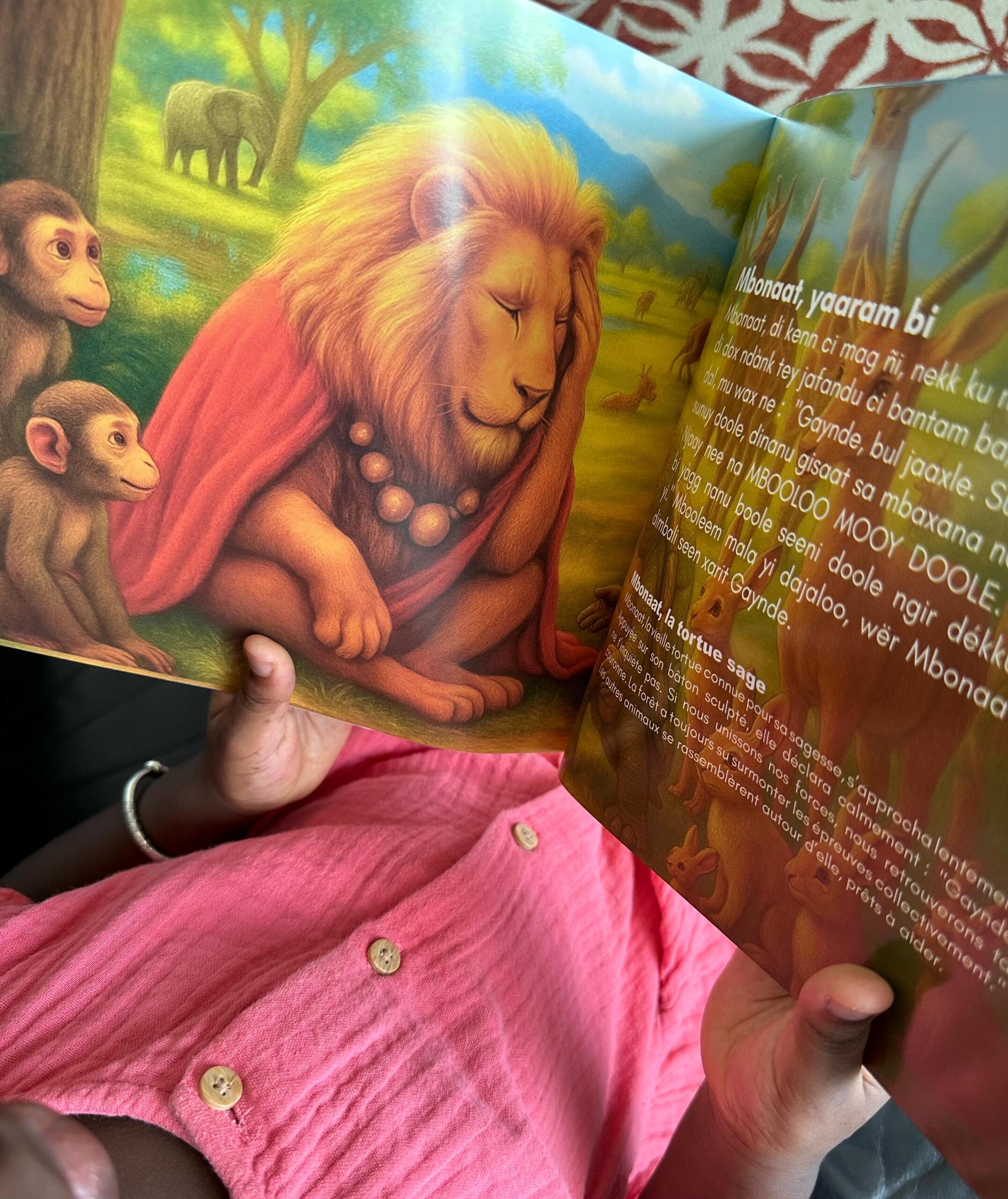 Njaabotu Mala yi est un livre éducatif pour enfant qui raconte une fable inspirante où des animaux apprennent à dépasser leurs différences pour réussir ensemble. Ce conte africain bilingue (wolof – français) permet aux enfants de découvrir leur langue et leur culture tout en intégrant des valeurs fortes comme l’unité, la solidarité et la persévérance.
